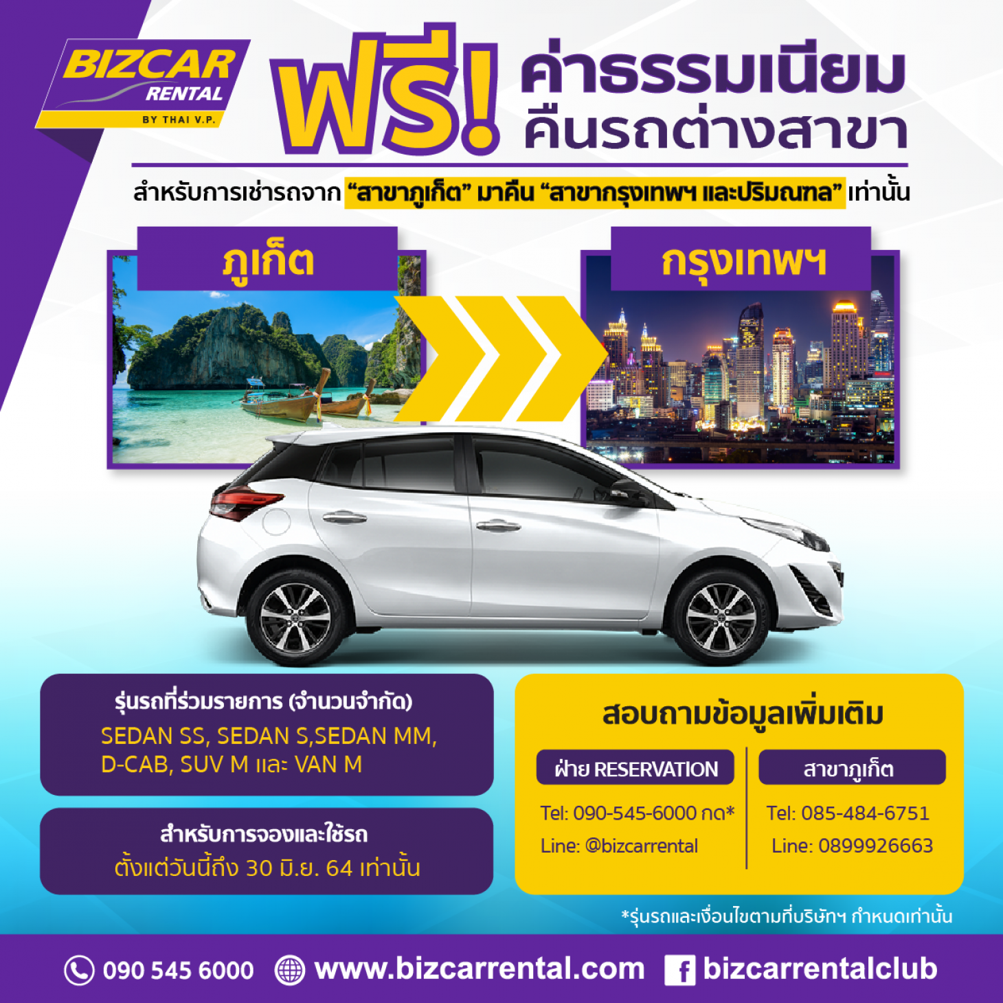 สำหรับการเช่ารถจากสาขาภูเก็ตมาคืนสาขากรุงเทพฯ และปริมณฑลเท่านั้น